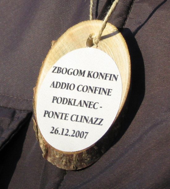 Ponte Clinaz, 26 dicembre 2007. Tra le tante feste per la caduta del confine con la Slovenia a cui abbiamo partecipato, questa di Ponte Clinaz, una sperduta località sul corso superiore dello Judrio, è stata certamente la più bella e spontanea: niente autorità, niente discorsi ma solo un clima di gioiosa adesione e di allegria popolare. In mezzo al ponte si incontrano e si abbracciano i primi doganieri italiani e jugoslavi che presidiavano questo remoto valico, mentre intorno a loro saltano e ballano gli Skrati, i folletti del folklore sloveno.
